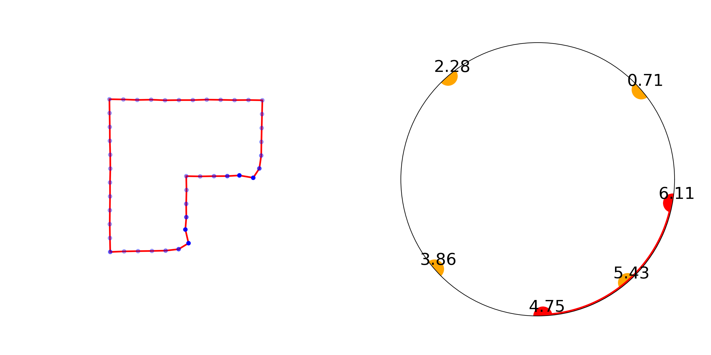Below we present a few examples of the ground truth cloth border along with the estimated border from the CloSE representation. We calculate the CloSE representation from the given state of the cloth and fold the start state along the estimated fold line. That is, reflect the border points on the folded side along the fold line. The folded border points and the fold line is estimated by the CloSE representation.